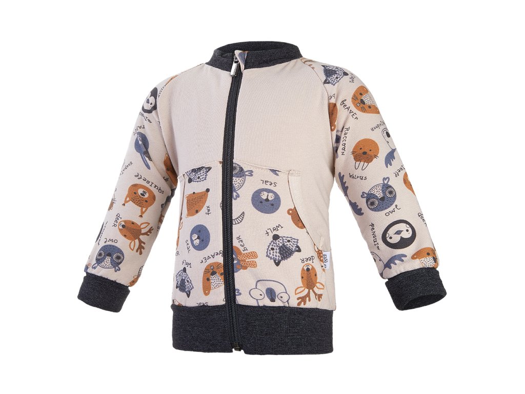 Mikina smyk TISK rozepínací Outlast® - latte barevná zvířátka Velikost oblečení: 86
