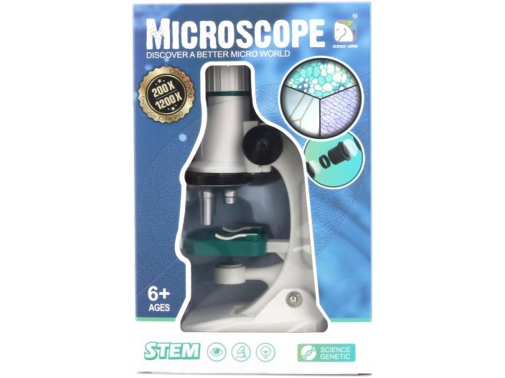 Tento mikroskop s různými úrovněmi zvětšení (1200×, 600×, 200x) je skvělým nástrojem pro malé vědce. Díky regulaci velikosti, jasnosti a zvětšení, držáku a pomocnému světlu poskytuje snadné a přesné pozorování.