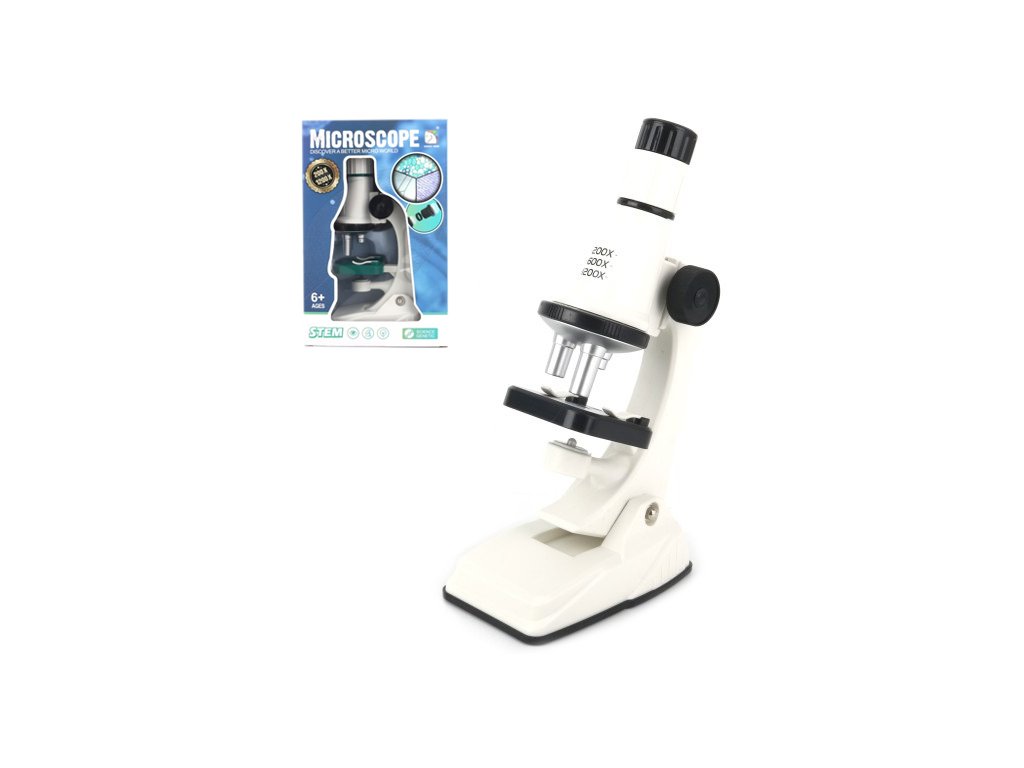 Mikroskop dětský bílý 200x/600x/1200x na baterie Světlo 2 barvy