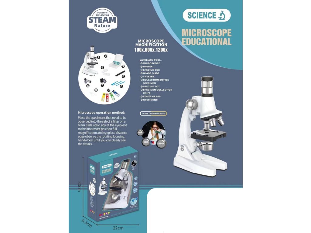 Mikroskop dětský střední zvětšení až 1200x na baterie v krabici
