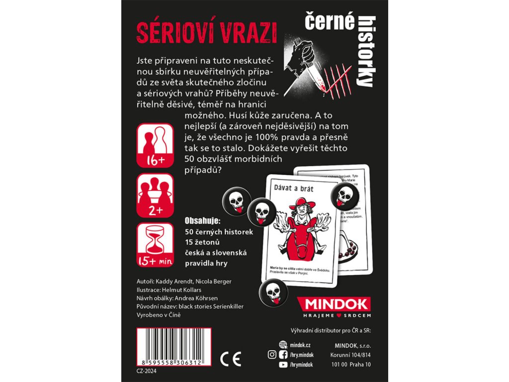 Společenská zábavná desková hra - karty od Mindoku - Černé Historky - Sérioví vrazi.