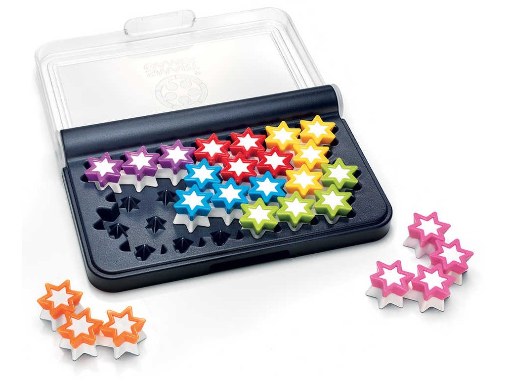 Dokážete správně umístit všechny hvězdy? Míří váš mozek až ke hvězdám? Pokud ano, bude pro vás snadné umístit všech 7 dílků s hvězdami na hrací desku a postupně vyřešit všech 120 rébusů. Kompaktní
