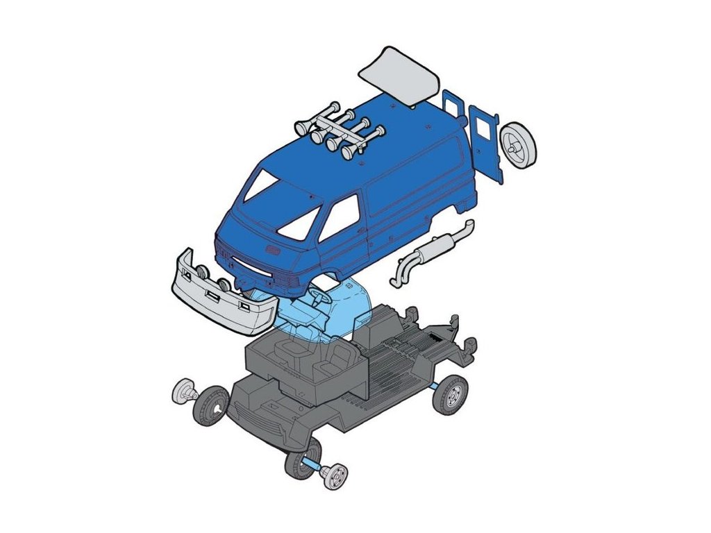 barevné nebo pokovené. Kombinací dílů shodných typů vytvářet nové varianty a udělat z něj téměř maketový model nebo jej využít jako základ pro stavbu zcela nového modelu auta. Pro