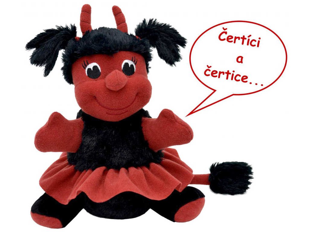 Čertice Berta pobaví malé i velké různými čertovskými říkadly a zvuky, které se přehrávají v náhodném pořadí po stisknutí bříška. Celkem je jich 17. Vyměnitelné baterie jsou součástí. Praní na 40°C, po