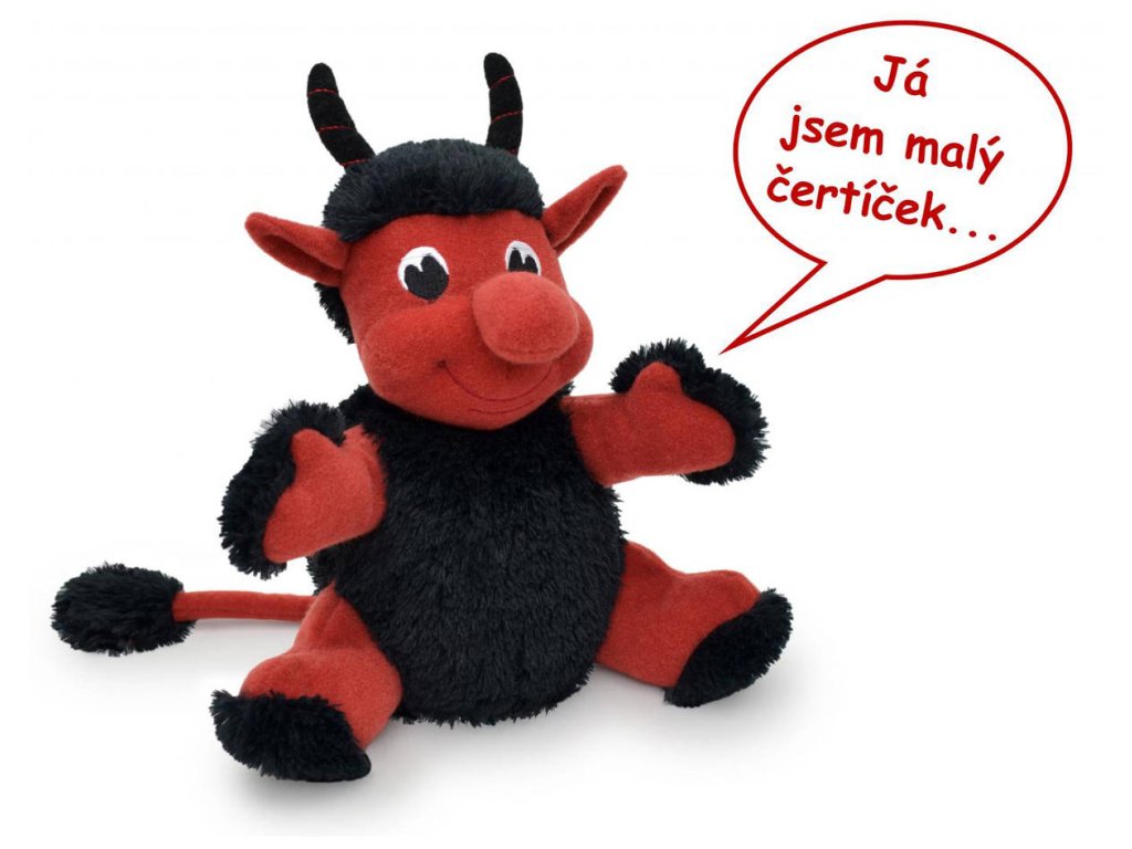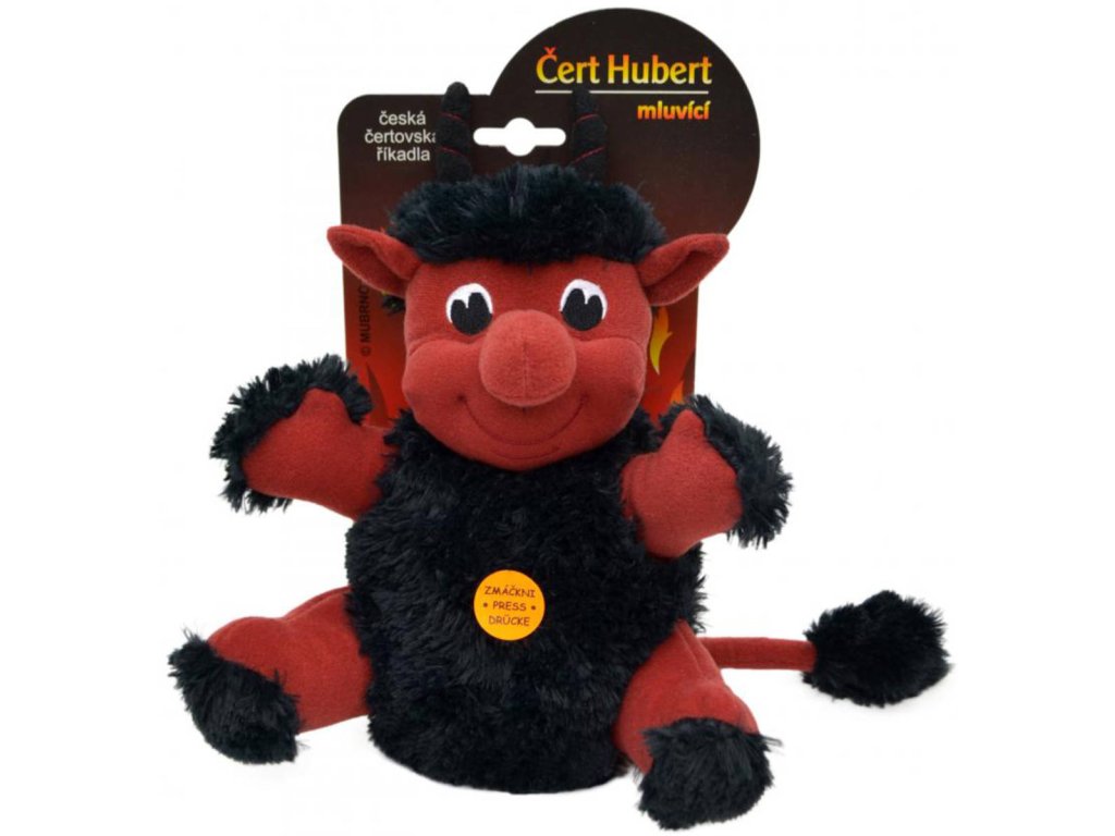 Plyšový čertík Hubert, který umí vyprávět spoustu pravých čertovských říkadel a vydávat zvuky. Mluví česky. Hračka na baterie, se zvukem.