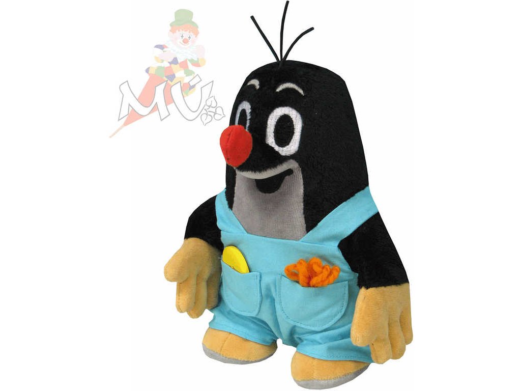 Plyšový Krteček je vyroben z jemného mikroveluru a má oblečeny svlékací kalhotky s kapsami.