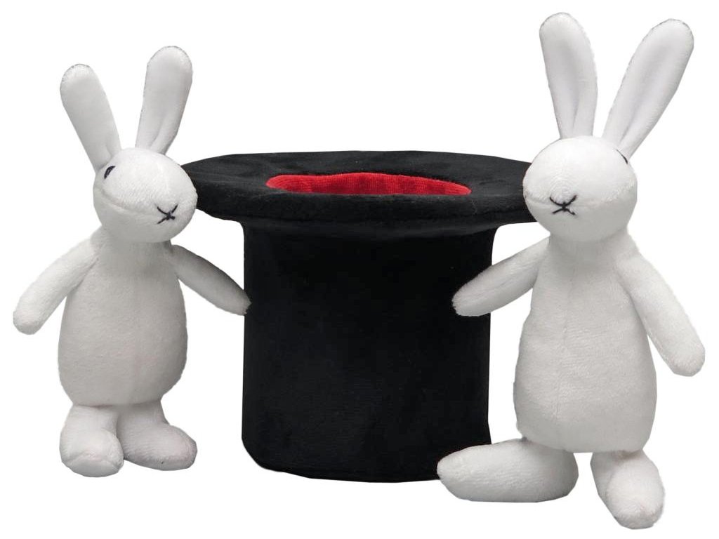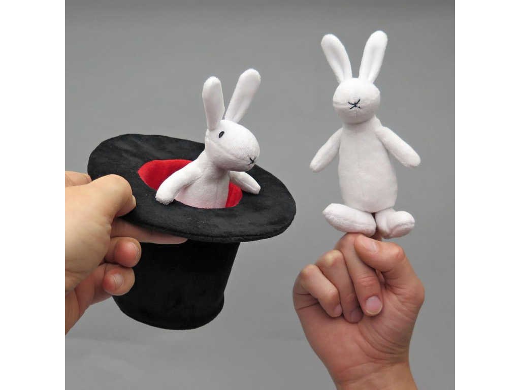 Králíci Bob a Bobek jako prstoví maňásci i s kloboukem kouzelníka Pokustóna. 3dílná sada textilních postaviček z příjemně měkoučkého materiálu.