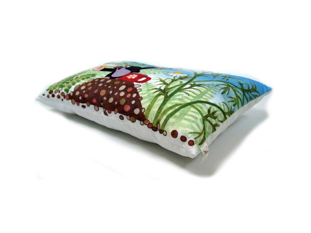 Měkoučký polštářek s motivem oblíbeného Krtečka, vhodný do postýlky, na cesty i jako dekorace do pokojíčku. Materiál: mikrovelur, obrázek tisk, náplň: duté vlákno. Zadní strana bílá. Pratelný na 40°C.