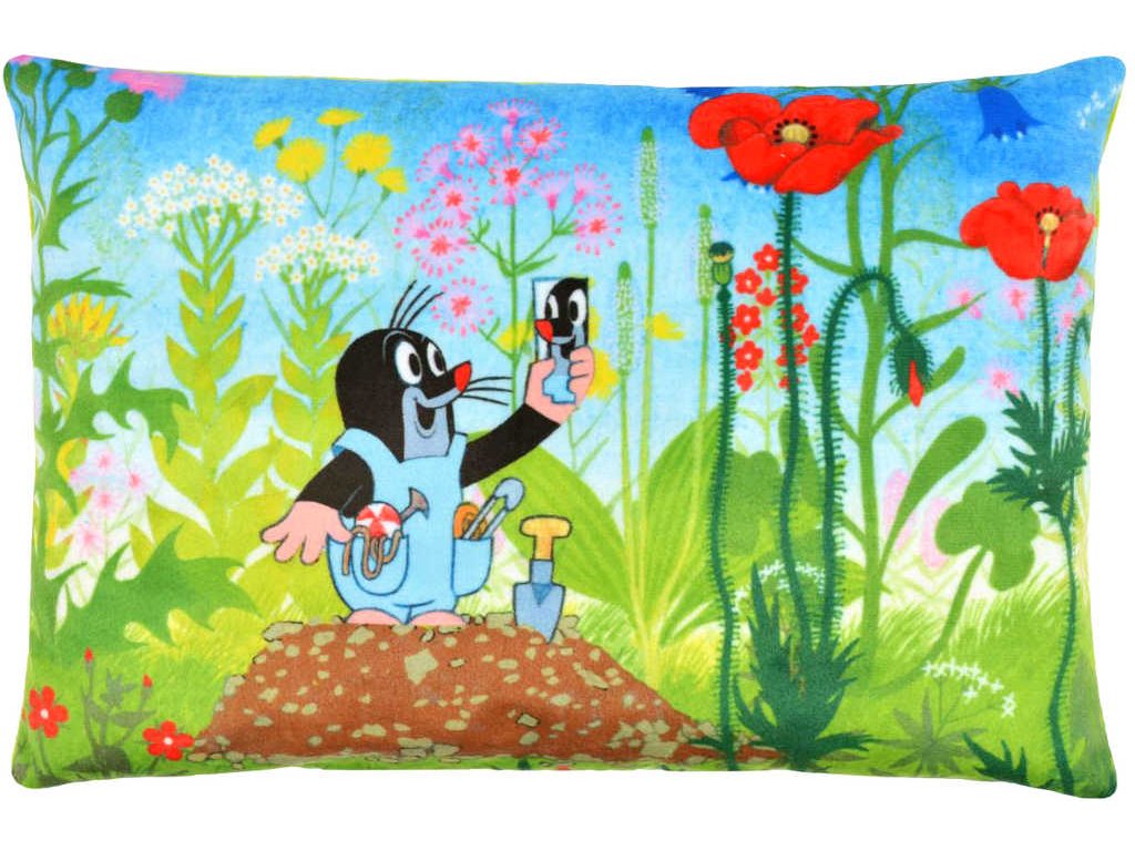 Měkoučký polštářek s motivem oblíbeného Krtečka, vhodný do postýlky, na cesty i jako dekorace do pokojíčku. Materiál mikrovelur, obrázek tisk, náplň duté vlákno. Zadní strana je zelená.
