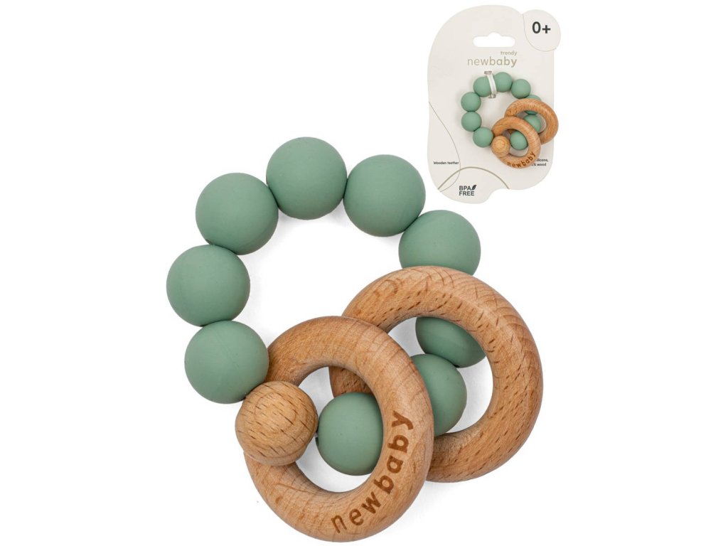 NEW BABY Zelené kousátko se silikonovými kuličkami a dřevěnými kroužky, pro nejmenší děti, pro miminko. Velikost 6cm.