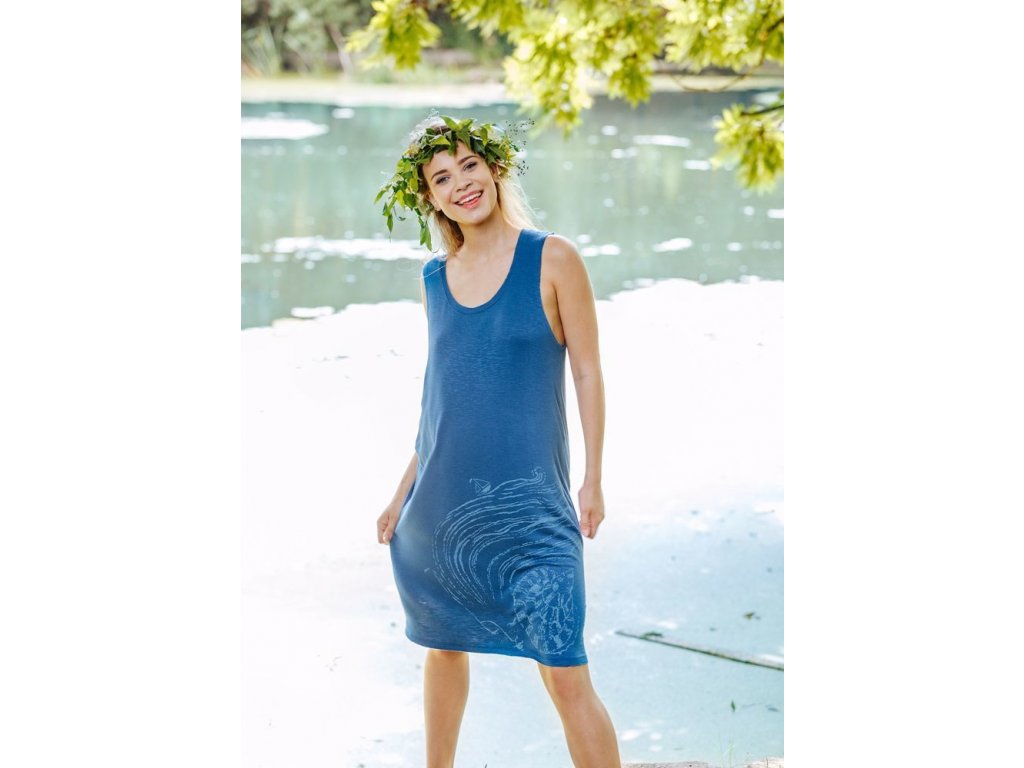 Dámská noční košile nebo volnočasové letní šaty s uzkými ramínky a aplikovaným potiskem. Baleno v transparentním obalu.