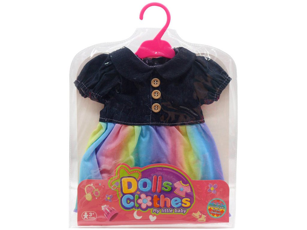 Obleček pro panenku, krátké duhové šatičky, černý vrchní díl, doporučeno pro panenky o velikosti 35cm. Součástí ramínko.
