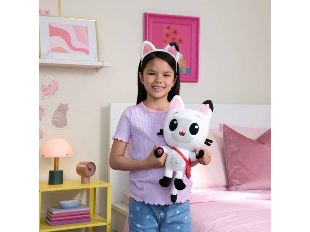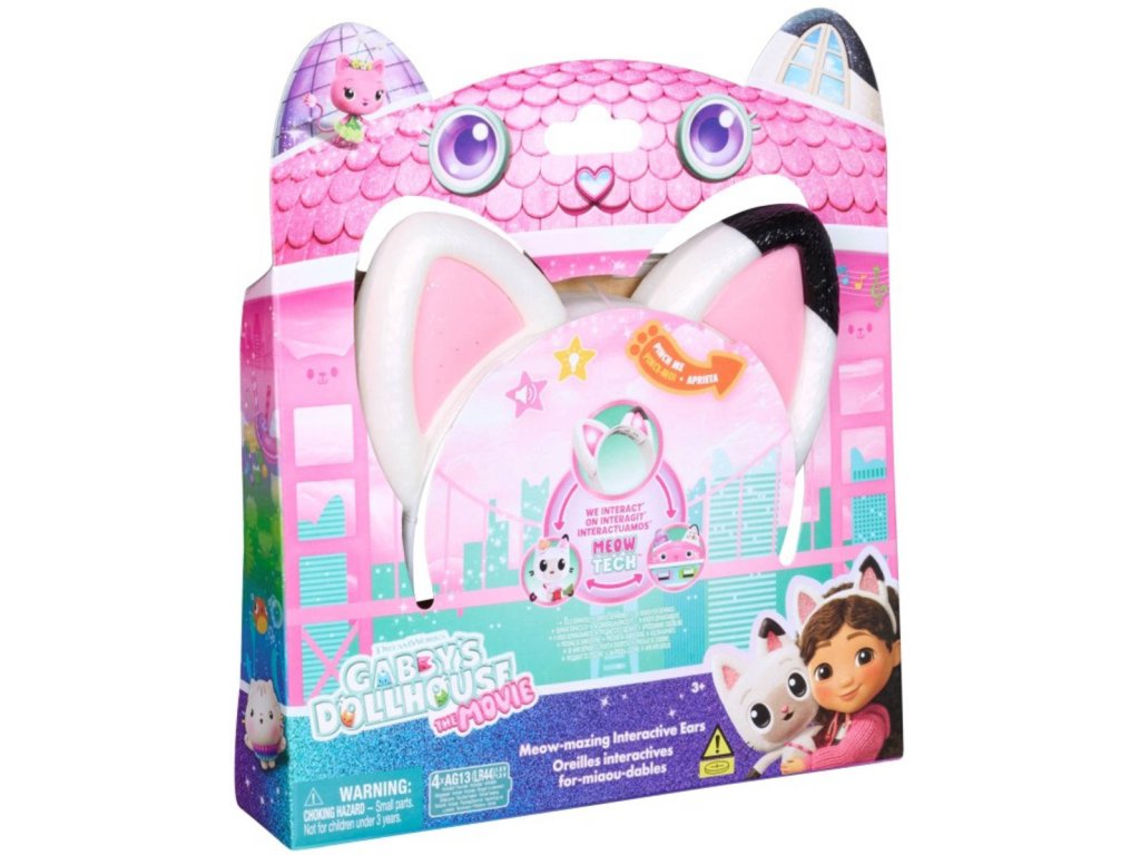 Úžasná dobrodružství začínají s interaktivní čelenkou – Gábininými úžasnými kočičími oušky! Tato 16,5 cm vysoká čelenka vypadá přesně jako Gábinina ikonická ouška a je jako stvořená pro vstup do jejího kouzelného světa. Čelenka má více než 20 zvukových efektů, světel a zvuků aktivovaných pohybem a inspiruje k nekonečnému hraní. Děti mohou zmáčknout levé nebo pravé ouško a přepínat mezi třemi zábavnými režimy: Taneční párty, režim Gábiny a Kočičí režim. Interaktivní ouška Gábiny navíc obsahují technologii Meow Tech – speciální funkci, která umožňuje propojení s interaktivním domečkem a interaktivní plyšovou Pandou Ťapkou pro ještě úžasnější propojenou hru!