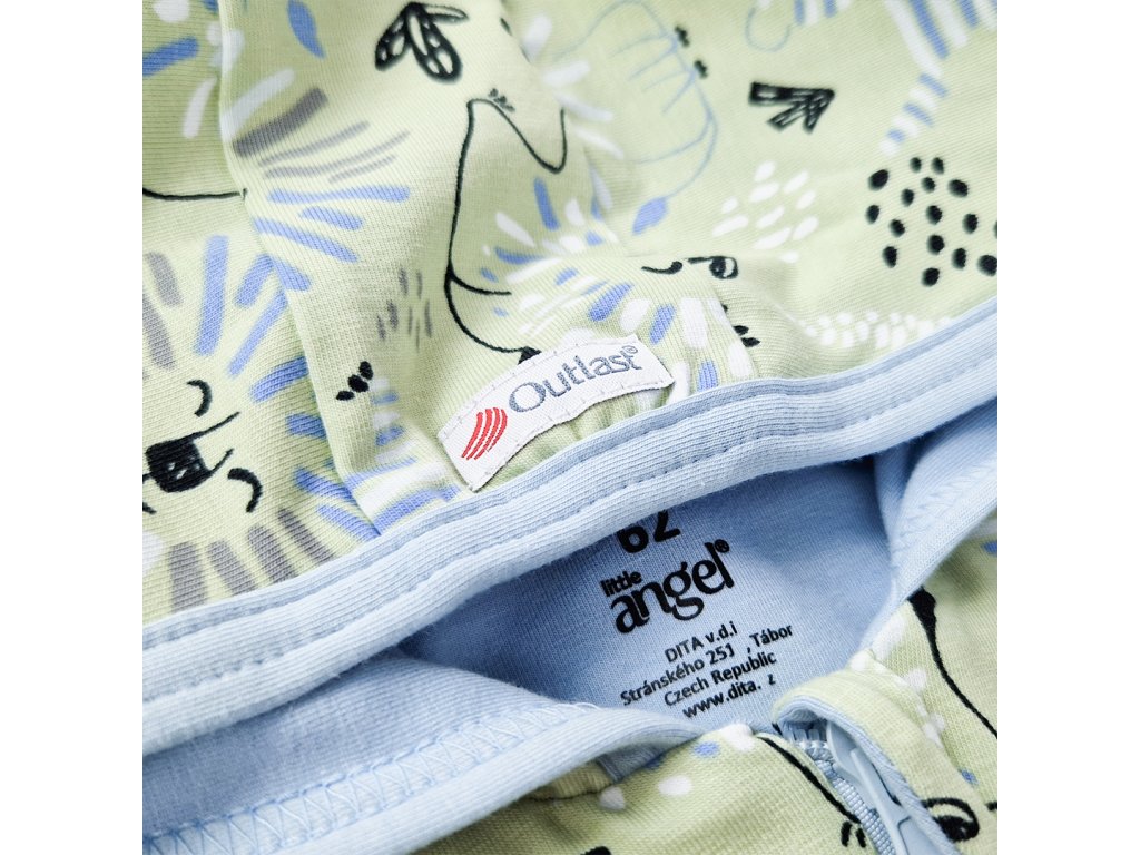 1. Outlast® vložený – který používáme do dětského textilu – tedy dek, fusaků, zavinovaček.