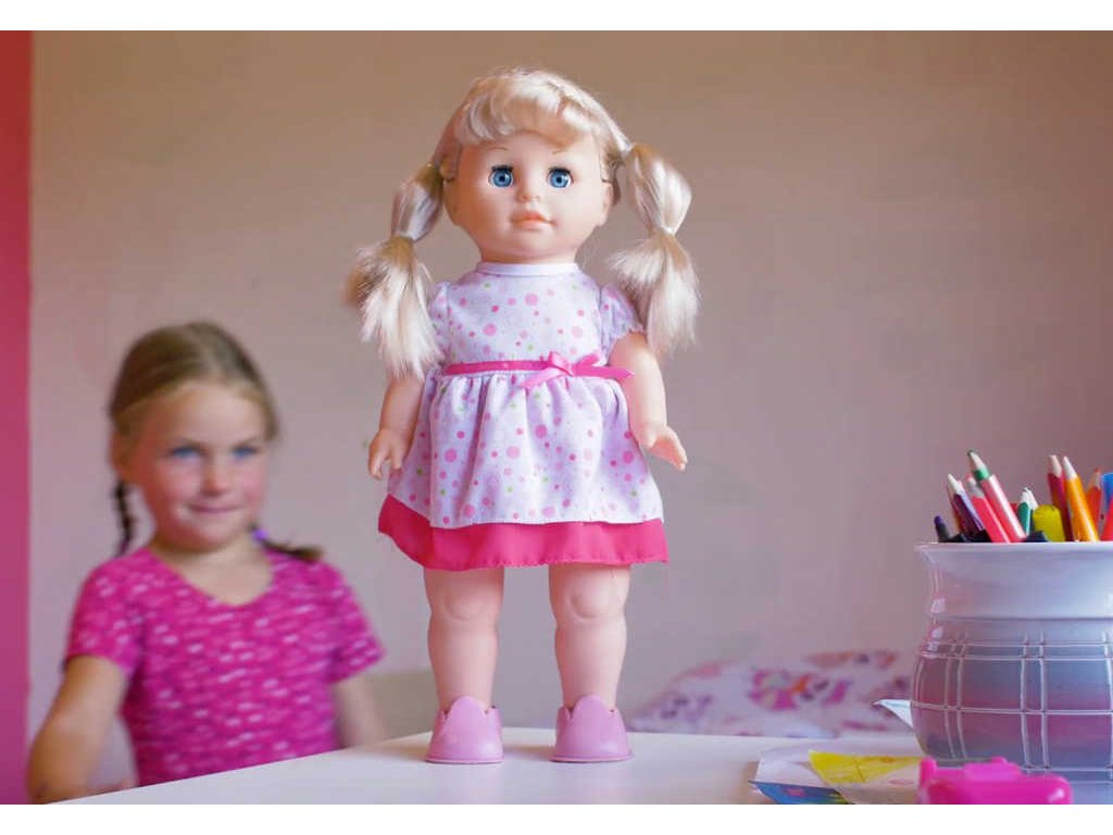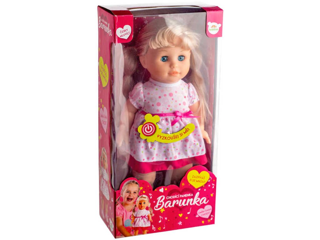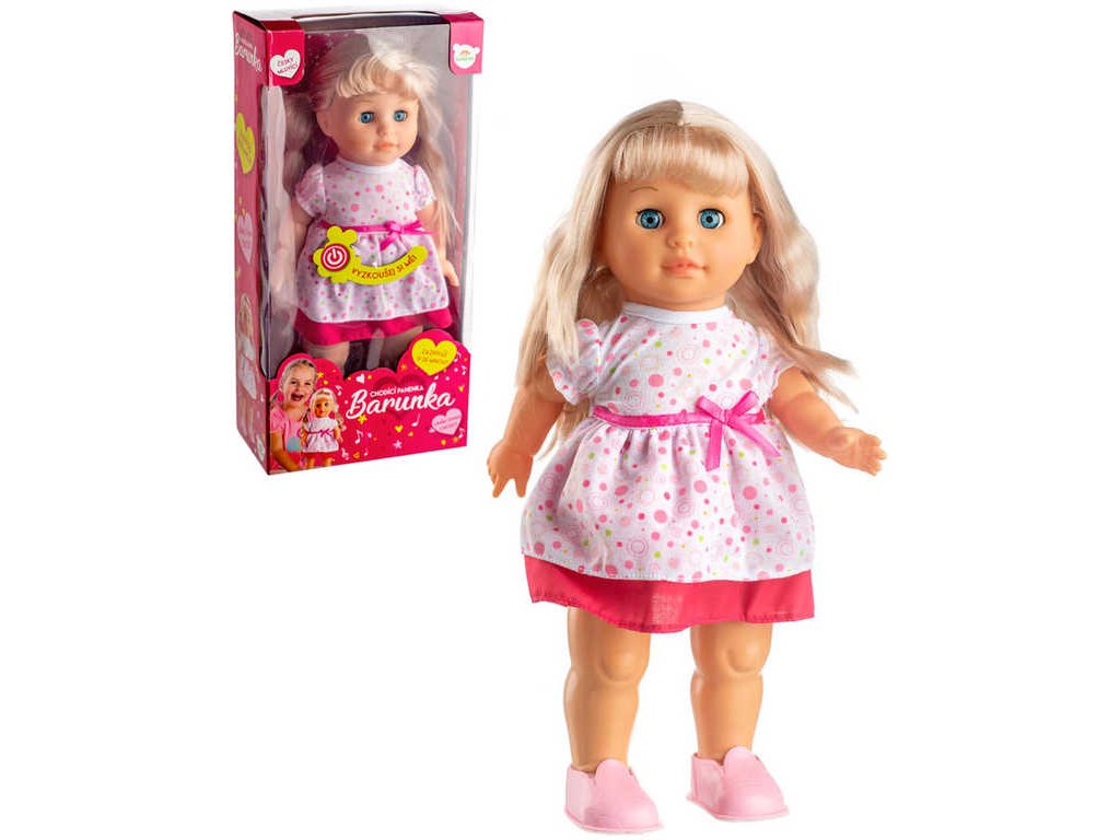 Chodící a mluvící panenka Barunka má krásné dlouhé vlásky, které holčičky mohou česat a vyrábět nejrůznější veselé účesy. Po stisknutí tlačítka na bříšku začne panenka chodit a zpívat: "Ahoj, já jsem