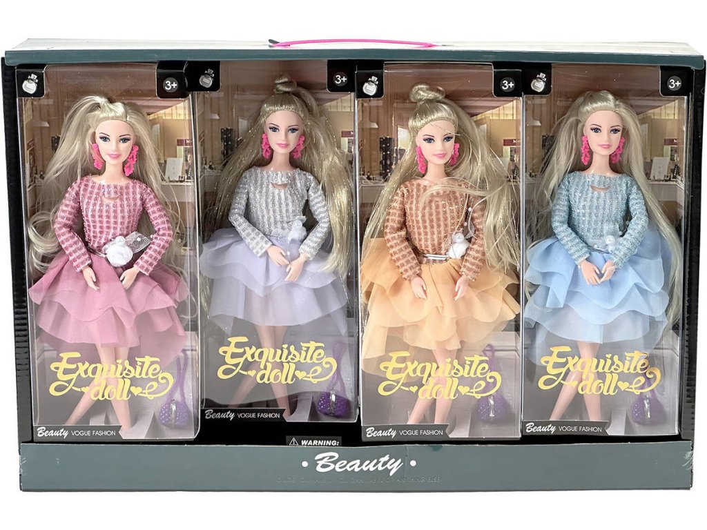Fashion panenka blondýnka ve stylovém třpytivém oblečku, s náušnicemi. Velikost 29cm, 4 barevné varianty.