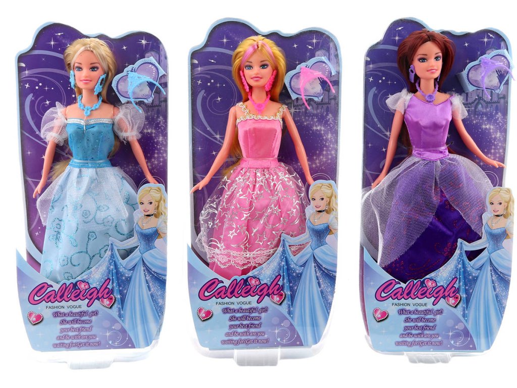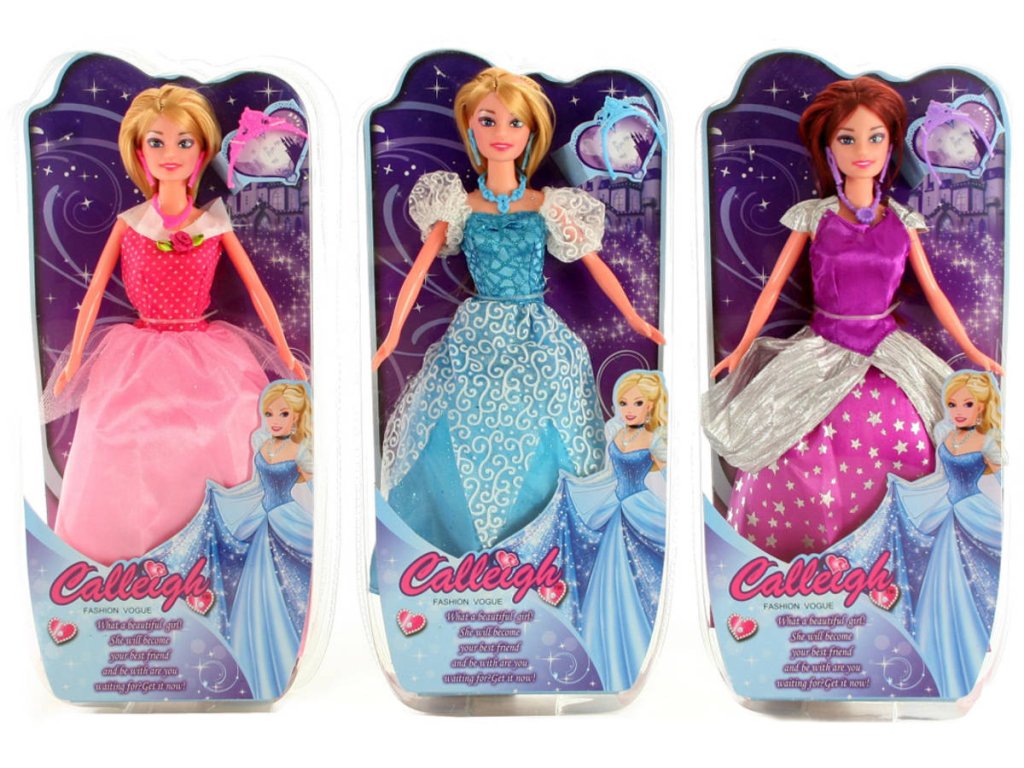 Krásná kloubová panenka princezna s korunkou v princeznovských, zdobených šatech. Panenka má pohyblivé ruce, nohy a hlavu. Velikost 29cm. Baleno v plastové krabičce. 6 variant provedení.