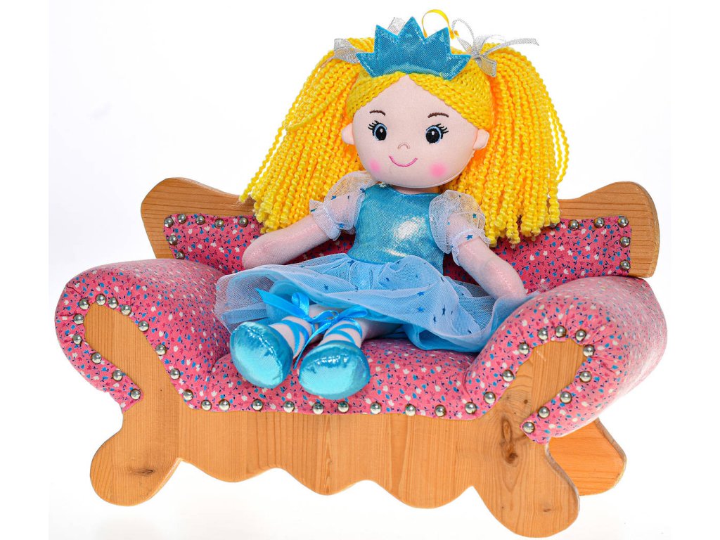 Textilní panenka Princezna Adélka o velikosti 35cm. Mluví (zpívá) česky motivy z pohádky S čerty nejsou žerty. Hadrová panenka, měkké tělíčko, na baterie, se zvukem.