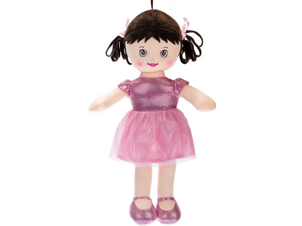 Měkká, veselá látková panenka s copánky, která umí mluvit a zpívat písničky. Třpytivé šatičky a botičky. Tuto panenku si oblíbí každá malá holčička. Světle růžová, lehká hadrová panenka Viktorka, vhodná pro děti již
