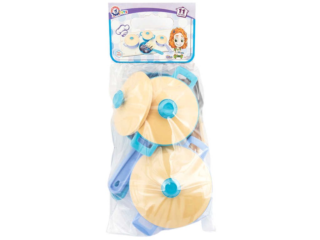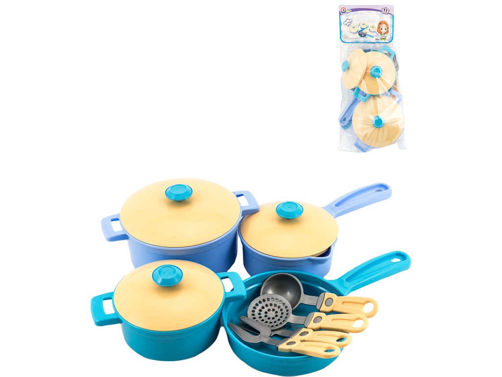 Tato plastová sada barevných hrnců s pánví a kuchyňskými nástroji nesmí v kuchyni chybět žádnému kuchařovi ani kuchařce. Baleno v sáčku.
