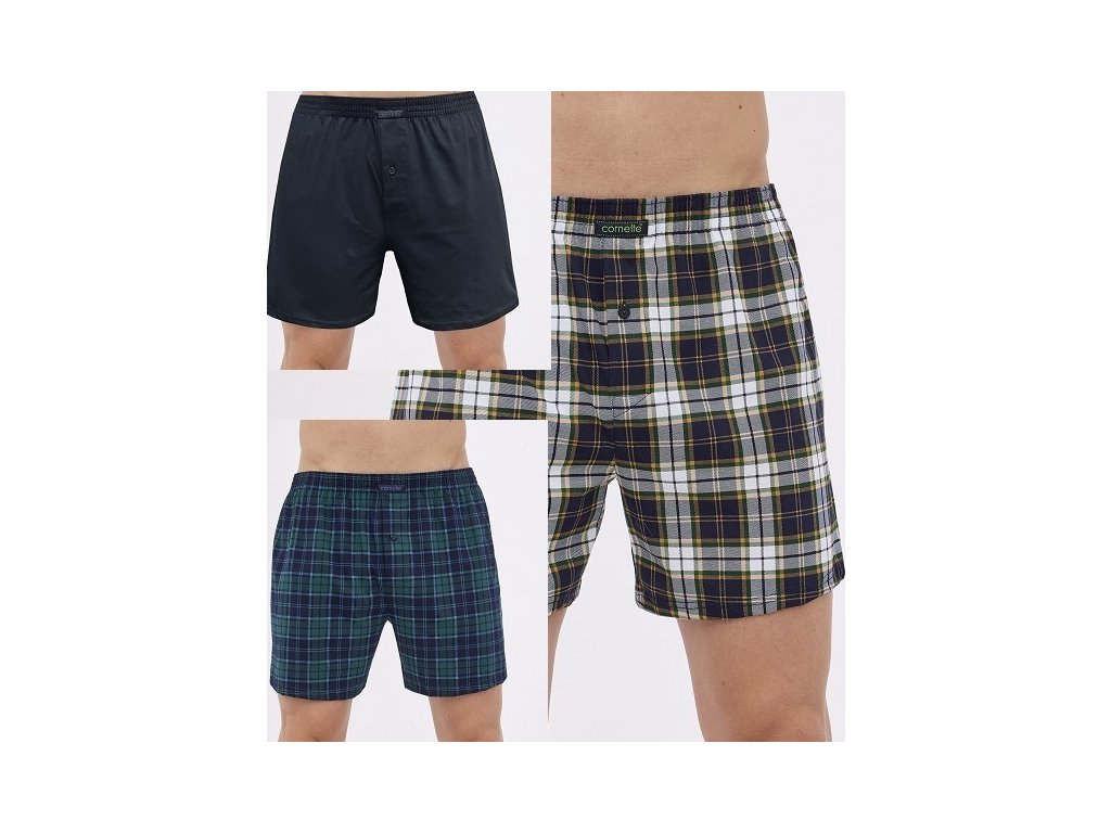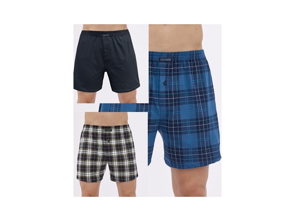 Pánské trenýrky Cornette s knoflíčkem na přední straně a klínem uzpůsobeným do střihu „podkovy“, který zajišťuje komfortnější nošení. Nemají zadní středový šev, který je mnohým mužům značně nepohodlný, ani rozparky na bocích. V pase jsou opatřeny všitou – pohodlnou gumu, kterou zdobí výšivka s logem výrobce. Trenýrky jsou baleny po třech kusech v transparentním obalu.