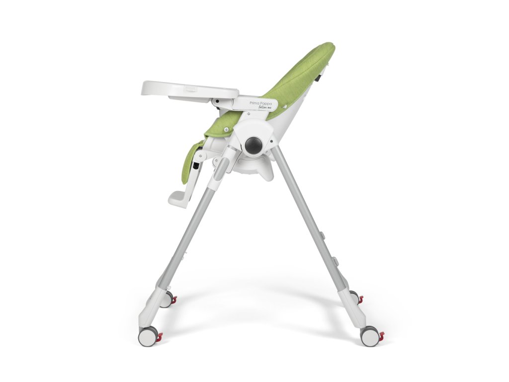 Ultralehká a multifunkční židlička Prima Pappa Follow Me roste s Vaším dítětem od narození až do 3 let: během prvních několika měsíců může být židlička Prima Pappa Follow Me používána jako pohodlné, relaxační naklápěcí lehátko. Od 6 měsíců věku dítěte poslouží jako jídelní židlička pro krmení a hraní a později, bez polohovacího tácku, k sezení u stolu společně s dospělými. Díky 4 kolečkům lze židličku snadno přemisťovat po vaší domácnosti. Celou židličku lze výškově nastavit do 7 pozic, její opěrka nohou je nastavitelná do 3 pozic a zádová opěrka do 5 pozic (více než 150 °). Dvojitý polohovatelný a odnímatelný tácek s držákem na láhev je vhodný i do myčky na nádobí a ve spodní části je opatřený bezpečnostní přepážkou, která zabraňuje vyklouznutí dítěte z židličky. Ve složeném stavu stojí samostatně a zabírá málo místa.