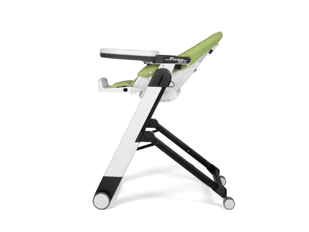 Díky 4 kolečkům a důmyslném brzdovému systému STOP&GO lze Siestu Follow Me snadno přesunout např. do jiné místnosti. Židlička se lehce rozkládá a skládá, po složení je kompaktní a stojí zcela samostatně. Výškově je nastavitelná do 9 různých poloh. Opěrku zad lze nastavit do 5 poloh a opěrku nohou do 3 poloh. Přední dvojitý pultík je polohovatelný a odnímatelný. Vespod je vybavený bezpečnostní přepážkou, která zabraňuje vyklouznutí dítěte a jeho horní část s držákem na láhev lze mýt v myčce na nádobí