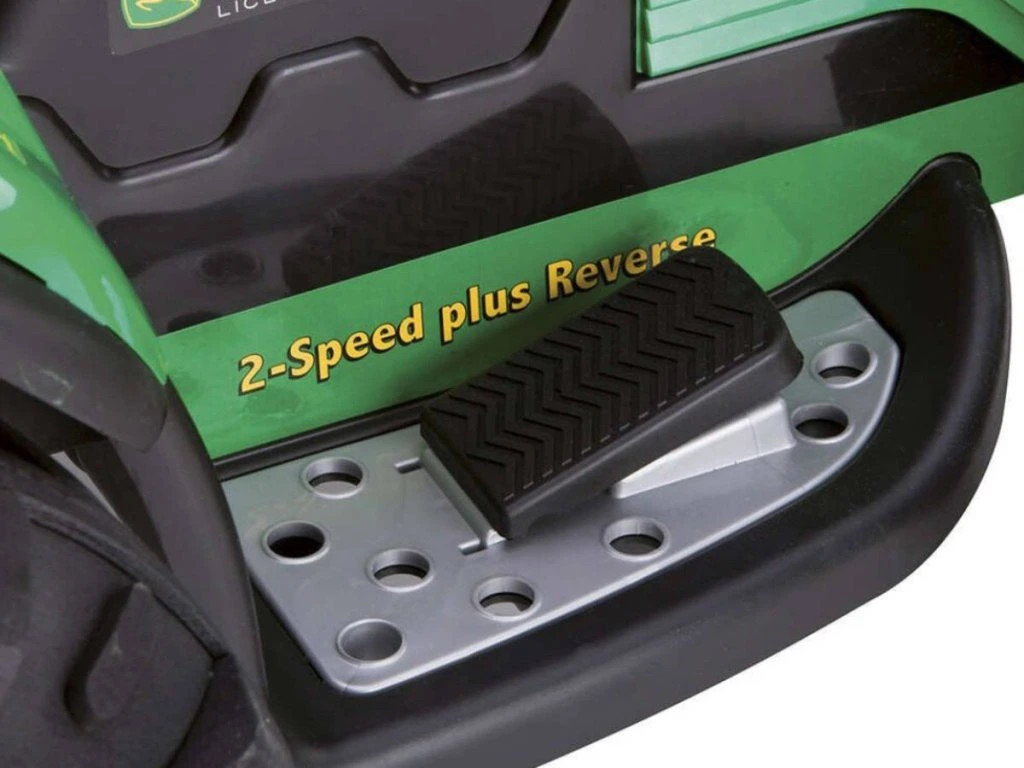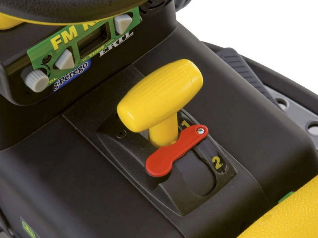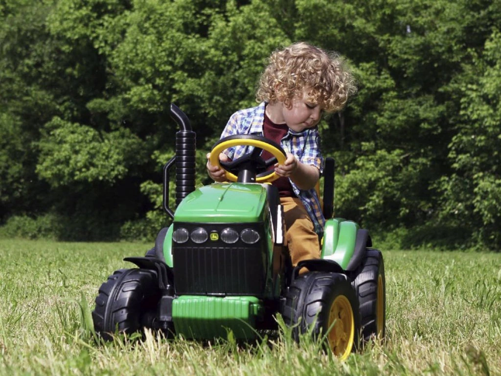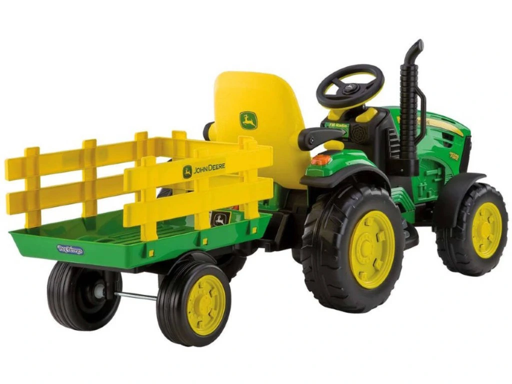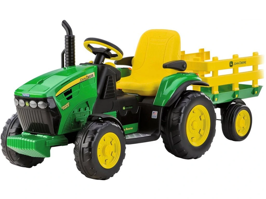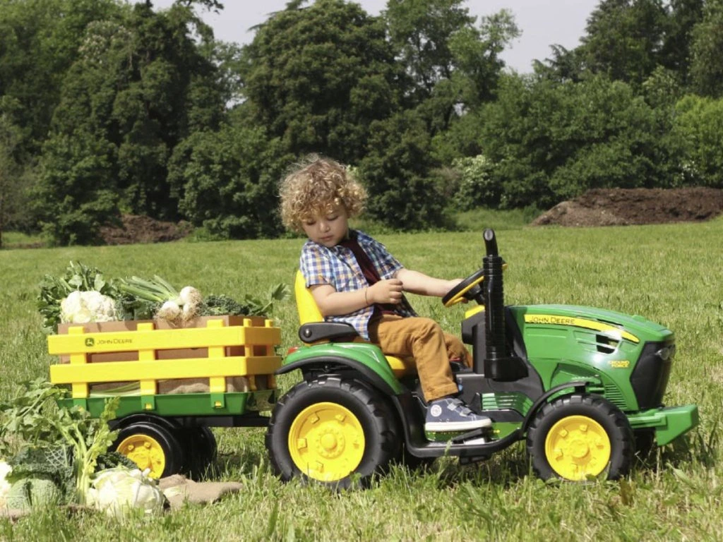 Jednomístný dětský elektrický traktor italské firmy Peg-Pérego v liceci John Deere. Vysoký výkon motorů 330 W (2x165W) a baterie (12,8V/8,6Ah/110Wh) poskytuje minimální dobu jízdy 45 minut a rychlost 3,5 km/h a 7,3 km/h vpřed a 3,5 km/h vzad.