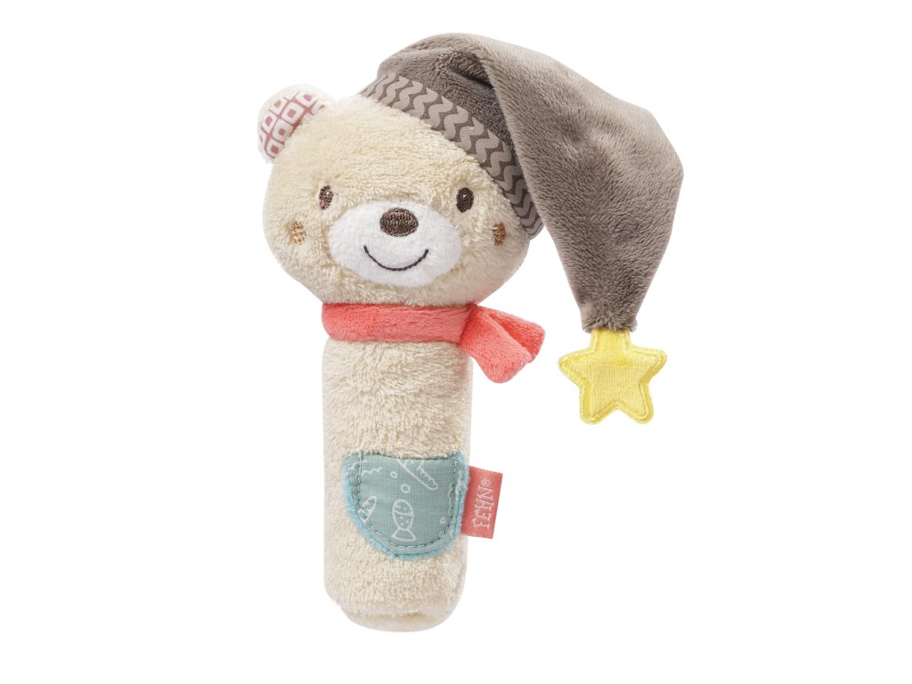 Hračky a další výrobky Baby Fehn záměrně využívají barevného kontrastu a stimulují intenzivní barevností zrakový smysl nemluvňete. Díky zrcátkům, kousátkům a plyšovým hračkám Baby Fehn, které šustí, chrastí či pískají, miminka neustále objevují celý svět hmatových a sluchových vjemů. Plyšový medvídek tak není nikdy pouhou plyšovou hračkou, ale vstupenkou do světa zážitků, které přispívají k rozvoji dítěte.