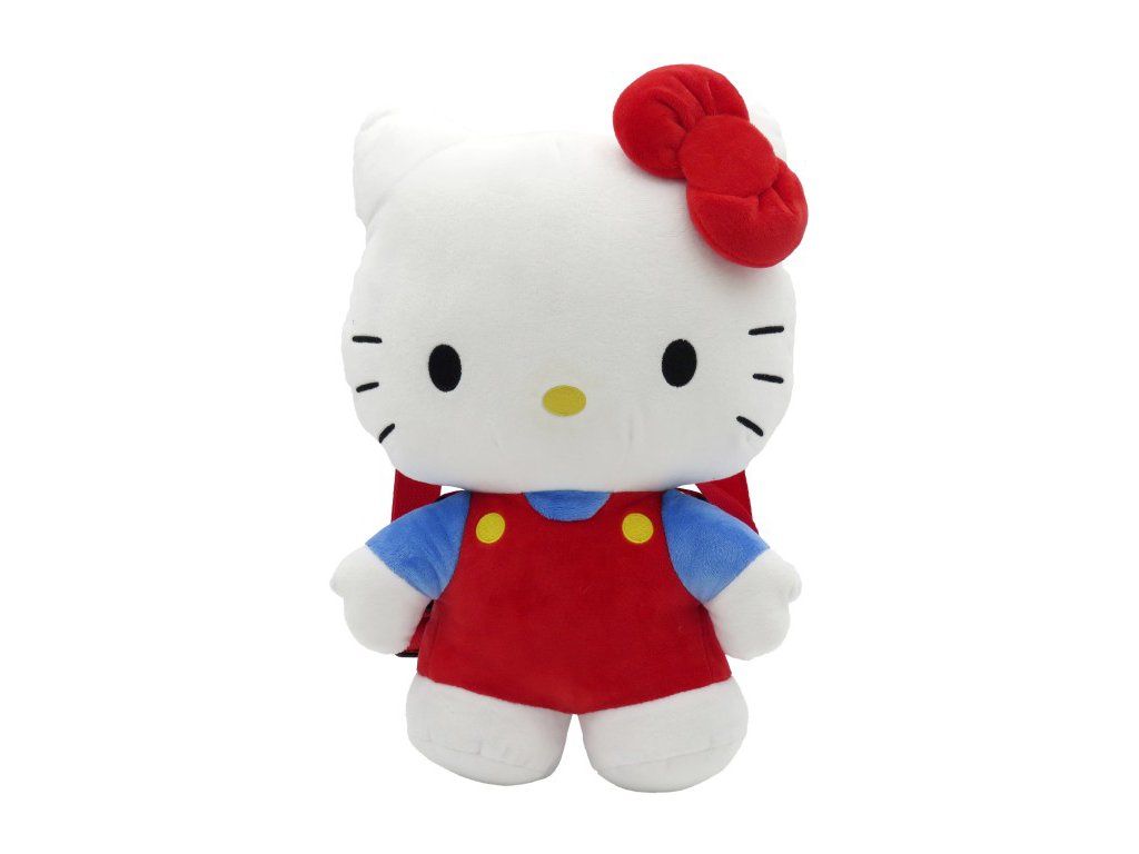 PLYŠ Batůžek 3D postavička kočička Hello Kitty červeno-modrý 25x35cm