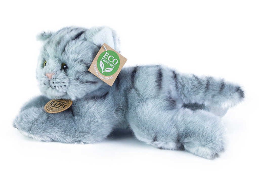 PLYŠ Kočka 30cm šedá ležící Eco-Friendly *PLYŠOVÉ HRAČKY*