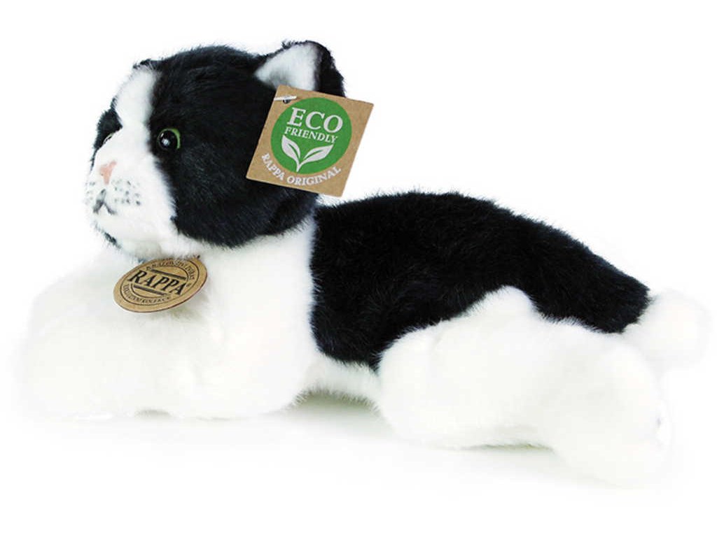 PLYŠ Kočka černo-bílá 23cm ležící Eco-Friendly *PLYŠOVÉ HRAČKY*