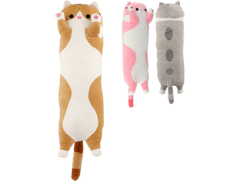 Dlouhá plyšová kočička, zvířátko - polštářek o velikosti 65 x 18cm, plyšák ve třech barevných variantách.
