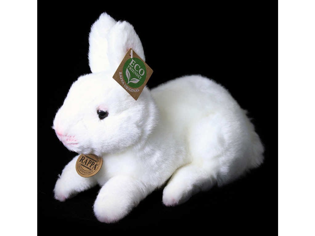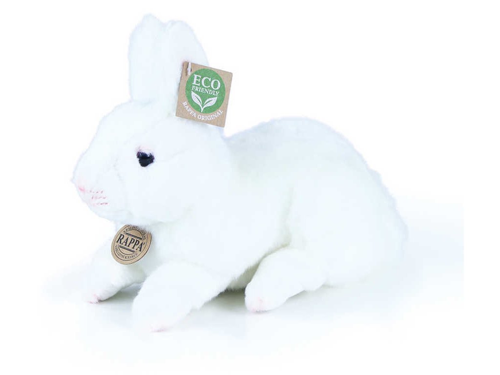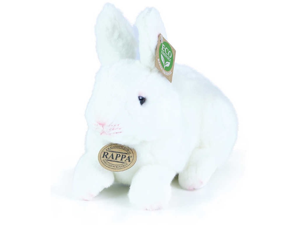 Krásný plyšový králíček v bílé barvě o délce 23cm je vyroben z vysoce kvalitní plyše a je tak součástí exkluzivní kolekce plyšových hraček RAPPA.