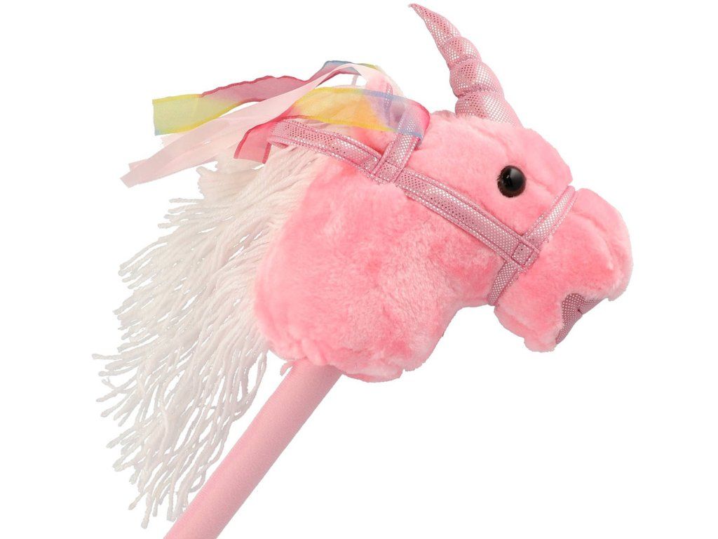 Přes hory a doly ponese svého jezdce tento jednorožec. Hlava je z měkkého textilu na stabilní tyči. Po stisknutí uší ušlechtilý oř rže a cválá! Tak nasedni a vydej se tam, kam hrdlo ráči. Tvůj parťák tě nenechá ve štychu.