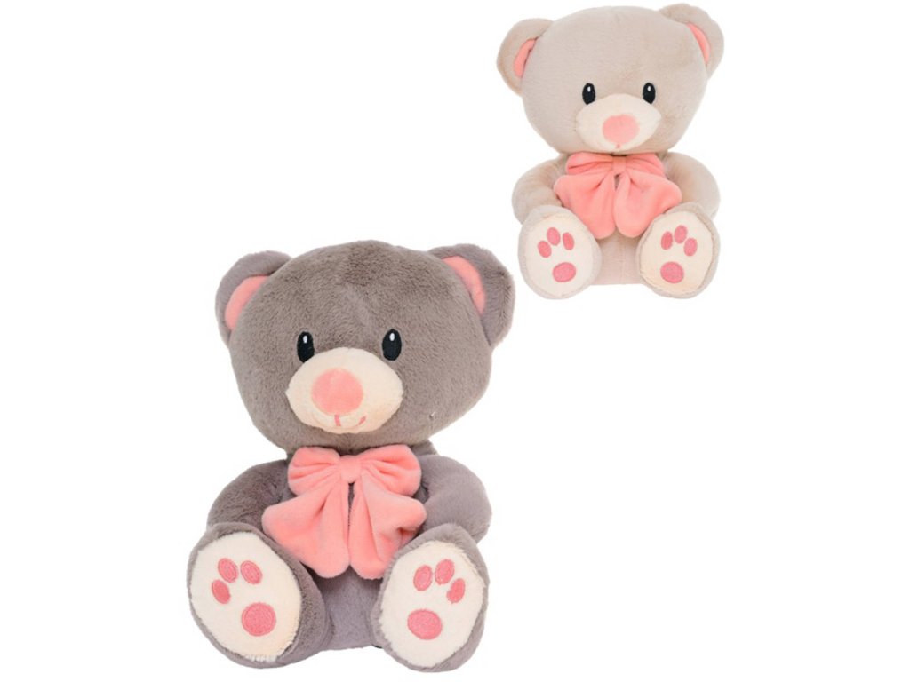 PLYŠ Medvěd 28cm sedící s mašlí 2 barvy *PLYŠOVÉ HRAČKY*