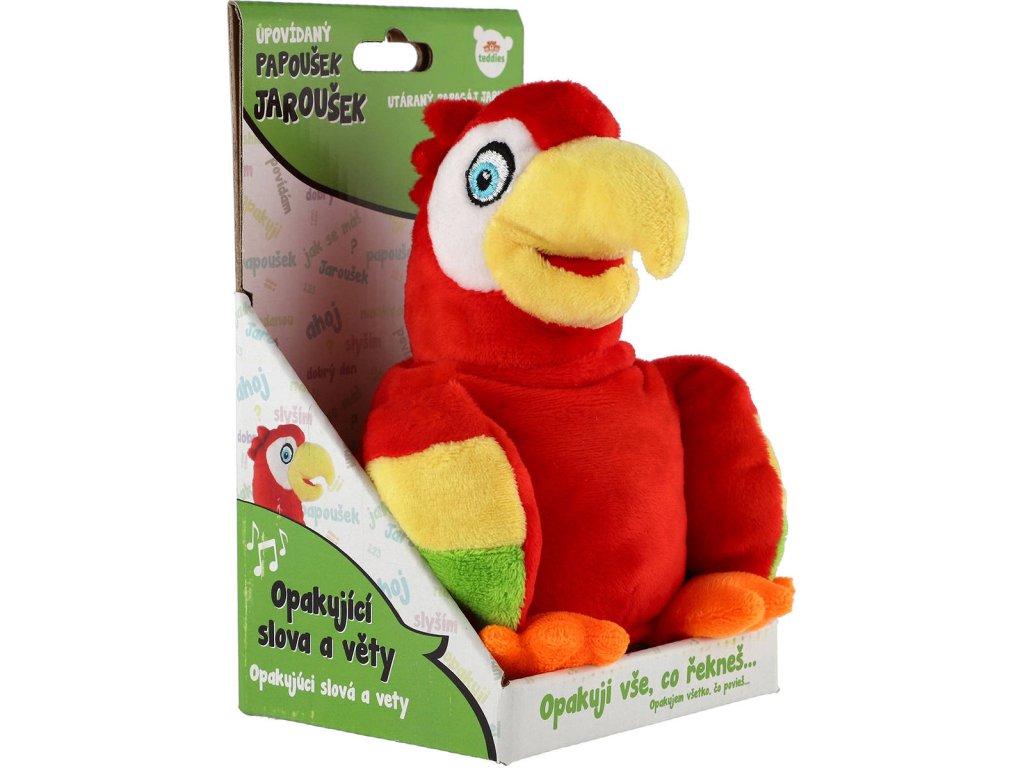 Rozkošný papoušek Jaroušek nadchne celou rodinu a zároveň si s ním užijete mnoho zábavy! Papoušek Jaroušek totiž umí mluvit - stačí na Jarouška promluvit a on legračně opakuje vše co uslyší svým pozměněným hlasem a bude u toho také roztomile přikyvovat hlavou. Papouška Jarouška si tak určitě zamilujete a stane se důležitou částí Vaší rodiny!