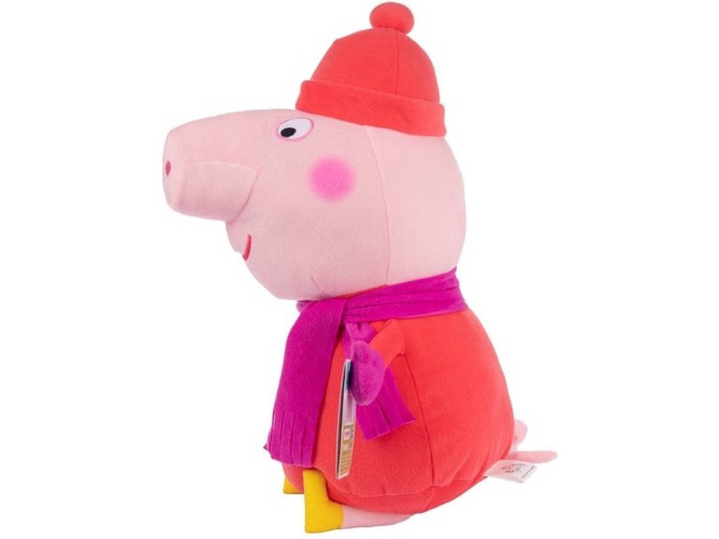 Prasátko plyšák Peppa Pig, zimní obleček, s čepicí a šálou, velikost 50cm, 4 různé druhy. Vyrobeno z kvalitní plyše.