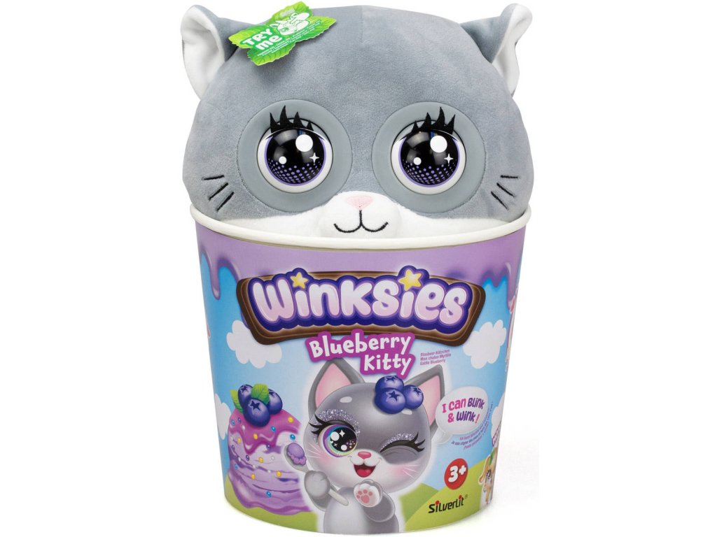 Winksies je plyšová hračka s interaktivními funkcemi. Objímejte je nebo pohlaďte Winksies po hlavě a jejich oči budou mrkat jako opravdové! Winksies jsou veselí mazlíčci - zvířátka která vydávají různé zvukové efekty a melodie. Jemně pohlaďte hračku po hlavičce a její oči zamrkají. Vložte Winksies do tematického kelímku na zmrzlinu, aby hračka vypadala legračně a roztomile.