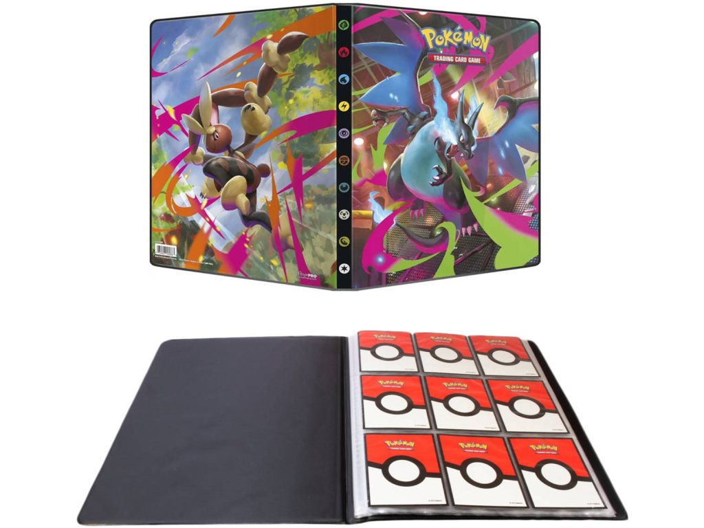 Pokémon album na karty velikosti A4 s motivem edice Phantasmal Flames. Na přední straně najdete pokémona Mega Charizard. Na zadní straně pak Mega Lopunny. Sběratelské album se 14 pevně vloženými průhlednými stránkami. Na každé stránce je 9 kapes na uložení karet. Mějte své oblíbené sběratelské kousky jako v bavlnce. Stránky jsou všité, což zajišťuje odolnost, ale neumožňuje přidávat další.