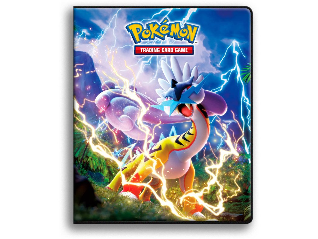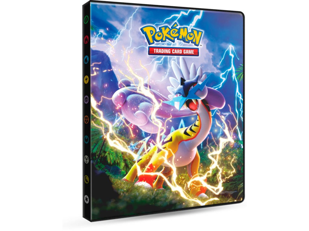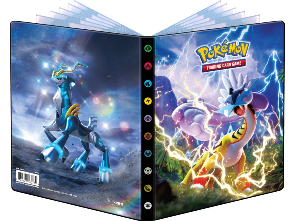 Krásné sběratelské album Ultra Pro SV05 Temporal Forces menší velikosti A5, na sběratelské karty Pokémon, s motivem Iron Crown a Raging Bolt. Album pojme až 84 karet.