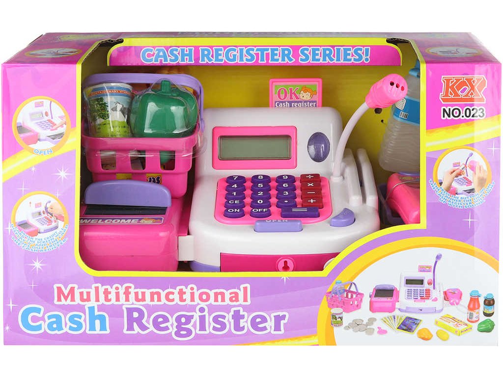 vyvedena v líbivé bílé, růžové a fialové barvě. Nezbytnou součástí sady je také nákupní košík, několik kusů zboží a peníze. Aby hra byla ještě více zábavná, vydává hračka reálné zvukové efekty. Děti se