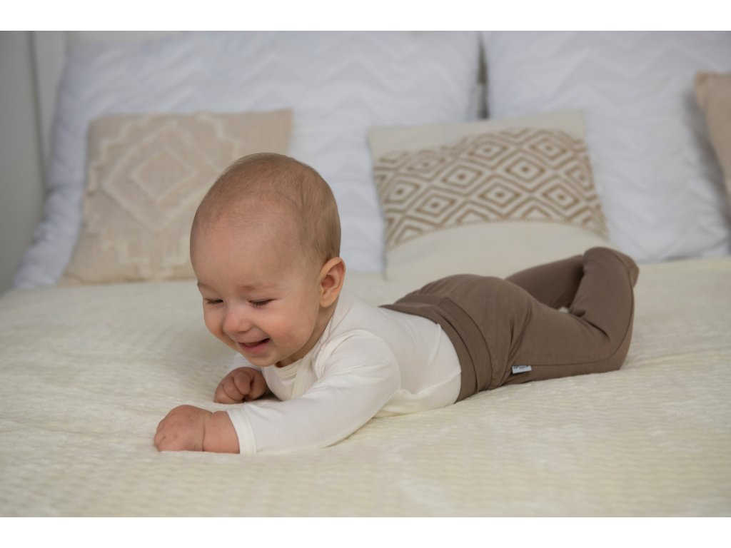 Máte hromadu krásných bodýček, ale nevíte, co dát k nim? Nejste fanda punčocháčků, rifličky a tepláky tlačí, zvláště, když se miminko začne přetáčet. Chcete prostě něco pohodlného. Takové jsou polodupačky Outlast®. V pase mají praktický lem, který netlačí a dá se ohrnout, takže vám kousek vydrží více velikostí. Výrobek má ochranný faktor UPF 50+ a v zimě skvěle poslouží jako funkční spodní vrstva.