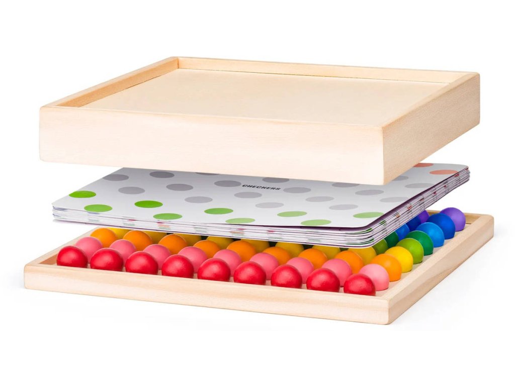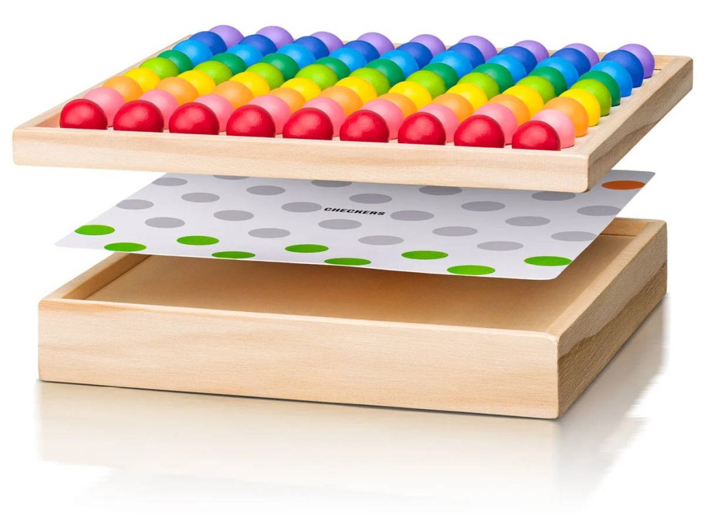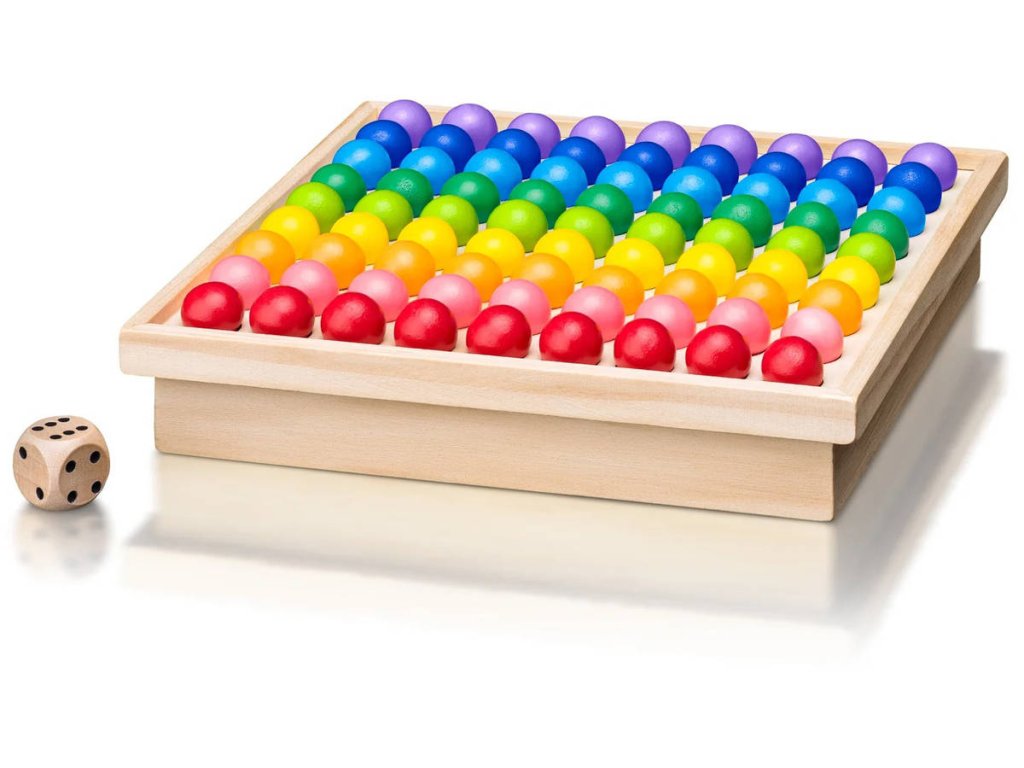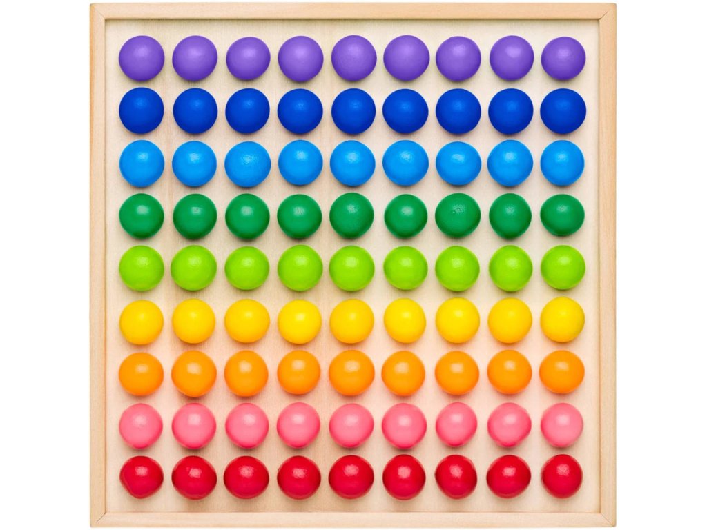 Motorická hra s barevnými kuličkami v barvách duhy, kombinovaná se souborem jednoduchých společenských her. Děti si staví obrázky dle předlohy, kuličky si však mohou vrstvit na sebe a vytvářet malé pyramidy. Plánky pro jednoduché společenské hry jako je Člověče, nezlob se, Piškvorky, Dáma, Sudoku a Šipky jsou součástí.