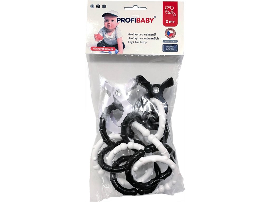 PROFIBABY Řetěz plastový závěs na kočárek černobílý s klipy pro miminko