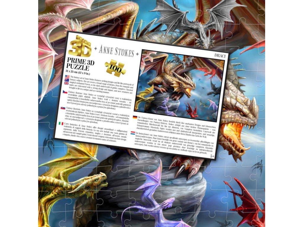 3D Puzzle skládačka s motivem "Draci". Rozměr motivu 31 x 23cm, 100 dílků.