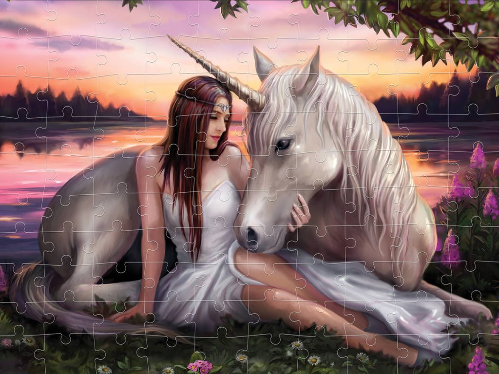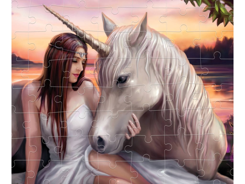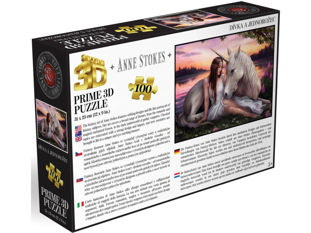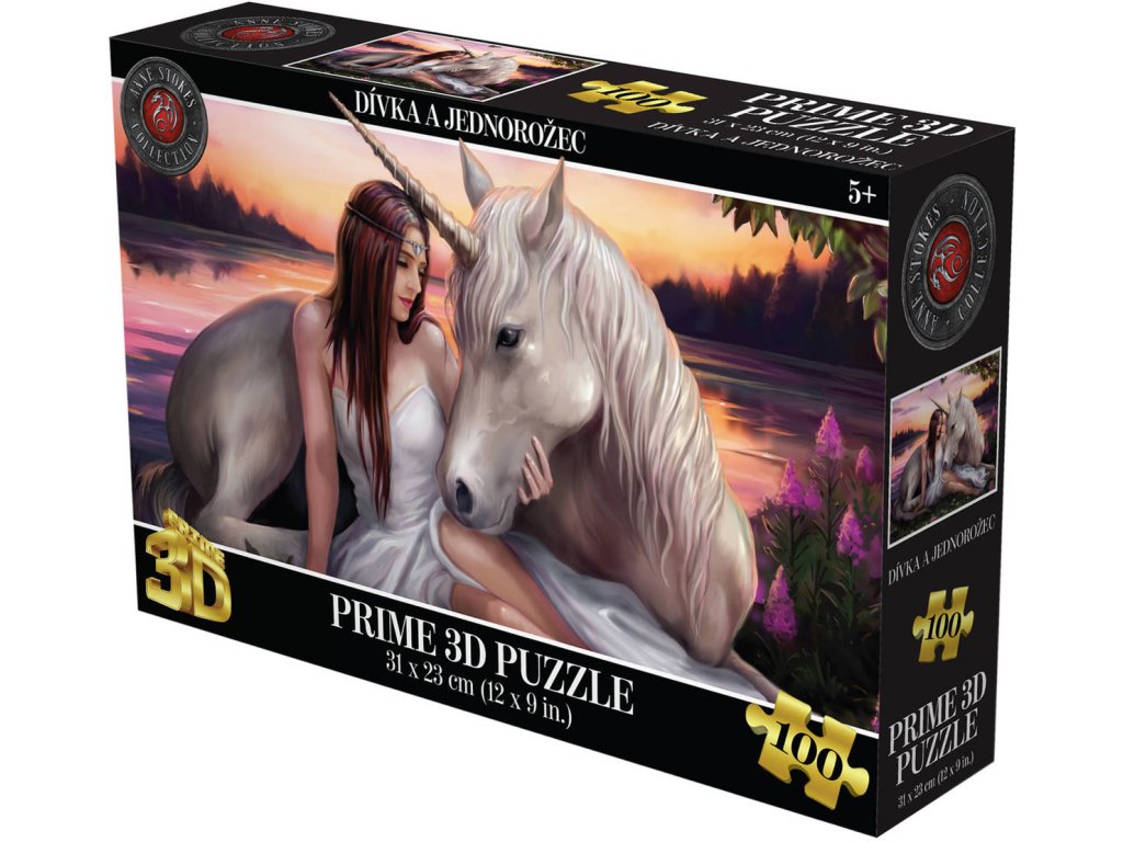 Kvalitní Prime 3D puzzle skládačka s motivem Dívka a jednorožec. 100 dílků, velikost motivu 31 x 23cm, prostorový holografický efekt při změně úhlu pohledu.