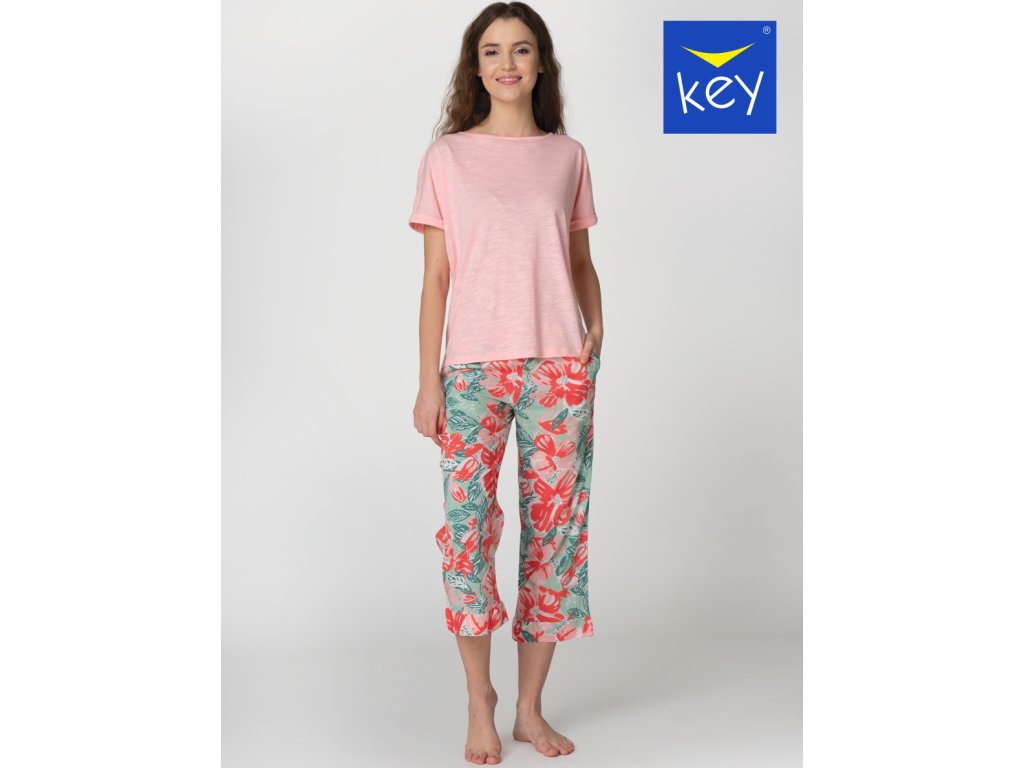 Dámské pyžamo vyrobené z vysoce kvalitní látky. Tričko je s krátkým rukávem a s půlkulatým výstřihem. Kalhoty jsou vzorované se 7/8 délkou. Baleno v transparentním obale.