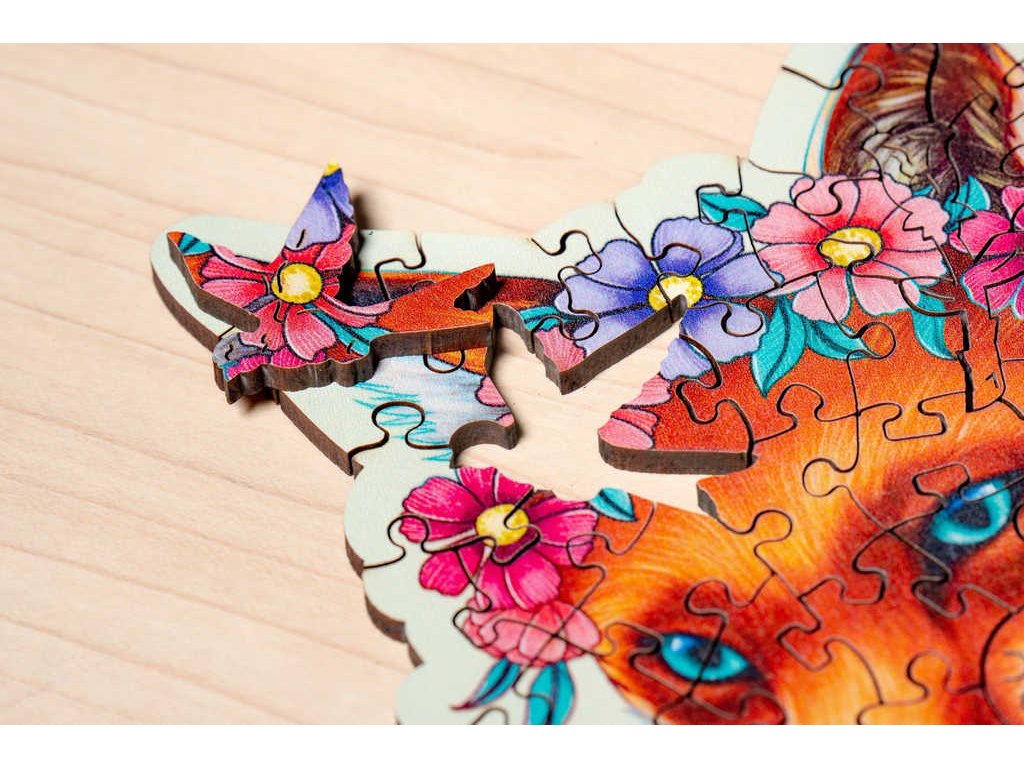 Tyto unikátní puzzle jsou vyrobené ze dřeva, na kterém je vytvořený vysoce kvalitní barevný potisk. Každý dílek má zcela unikátní tvar. Najdete zde dílky, které vypadají jako skutečná zvířata, květiny a jiné předměty z reálného života. Dále zde najdete i dílky abstraktních tvarů. Při skládání tohoto dřevěného puzzle uvolníte mysl a báječně se odreagujete. Vyrobeno v Evropě.