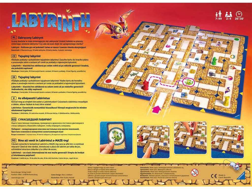 Labyrint je jednoduchá, ale napínavá hra, při které si užijete mnoho zábavy. Úkolem každého hráče je najít v labyrintu nejlepší cestu k jednotlivým pokladům a tajným bytostem, které má na svých